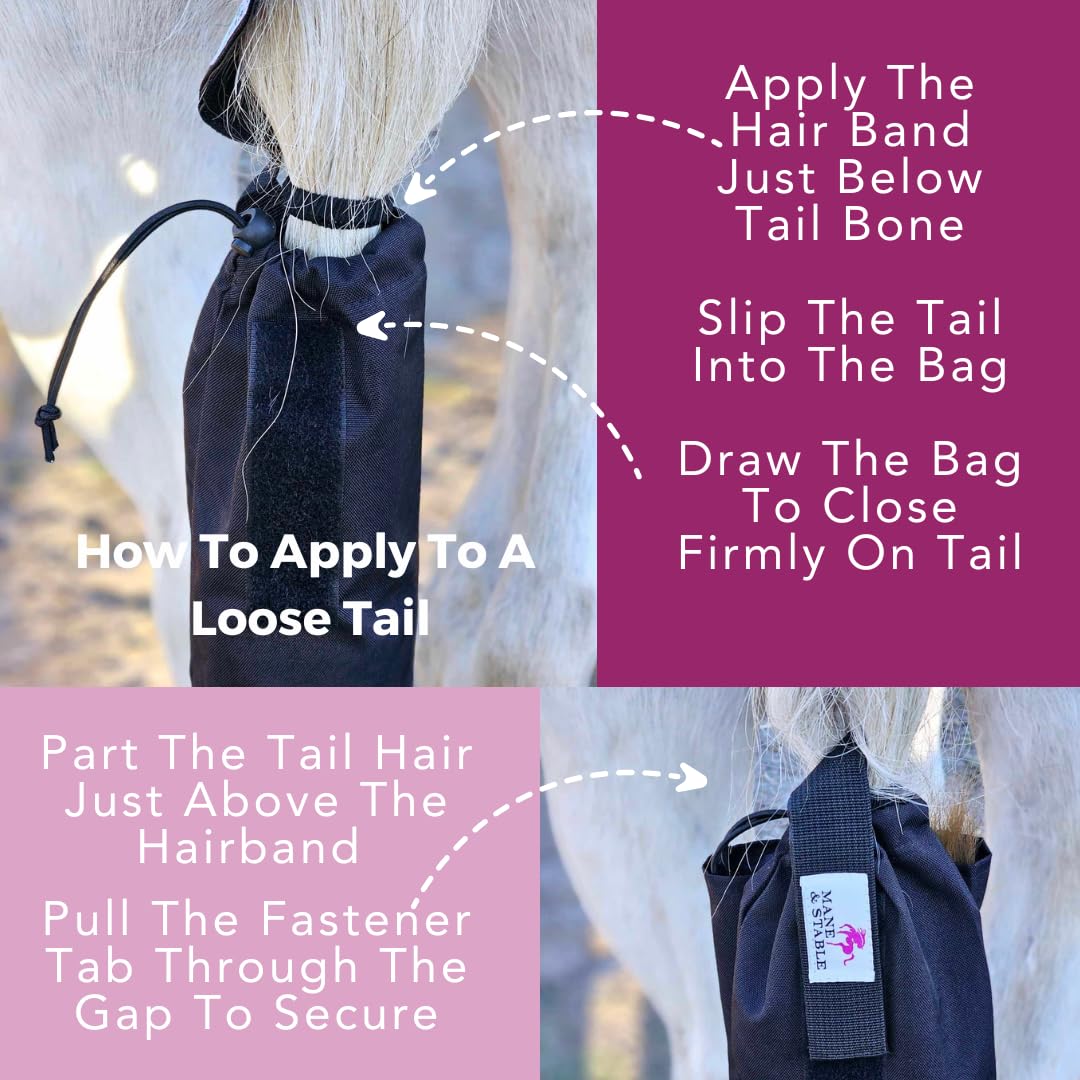 Very easy! Simply plait or use the included band for loose tails on the tail, slide the tail into the bag, close the drawstring and secure with the Velcro tabs, and you’re done in seconds. No fiddly straps or complicated tying required.