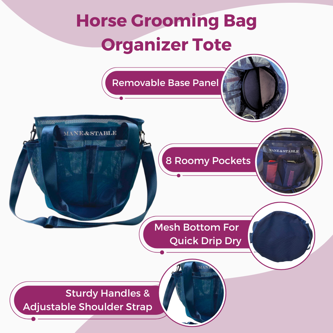 The Ultimate Grooming Companion for Horse Lovers: Improve your grooming game with a tote that's as dedicated to your horse's well-being as you are. Perfect for both professional groomers and devoted horse owners, its practical features and durable construction ensure your horse always looks its best, no matter where you are.