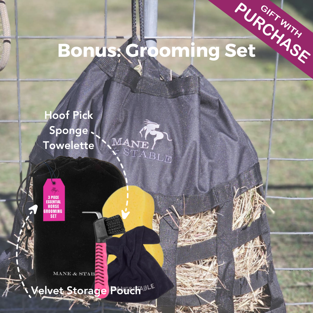 Horse Hay Saver Bag | Bonus 3pce Grooming Tool Set