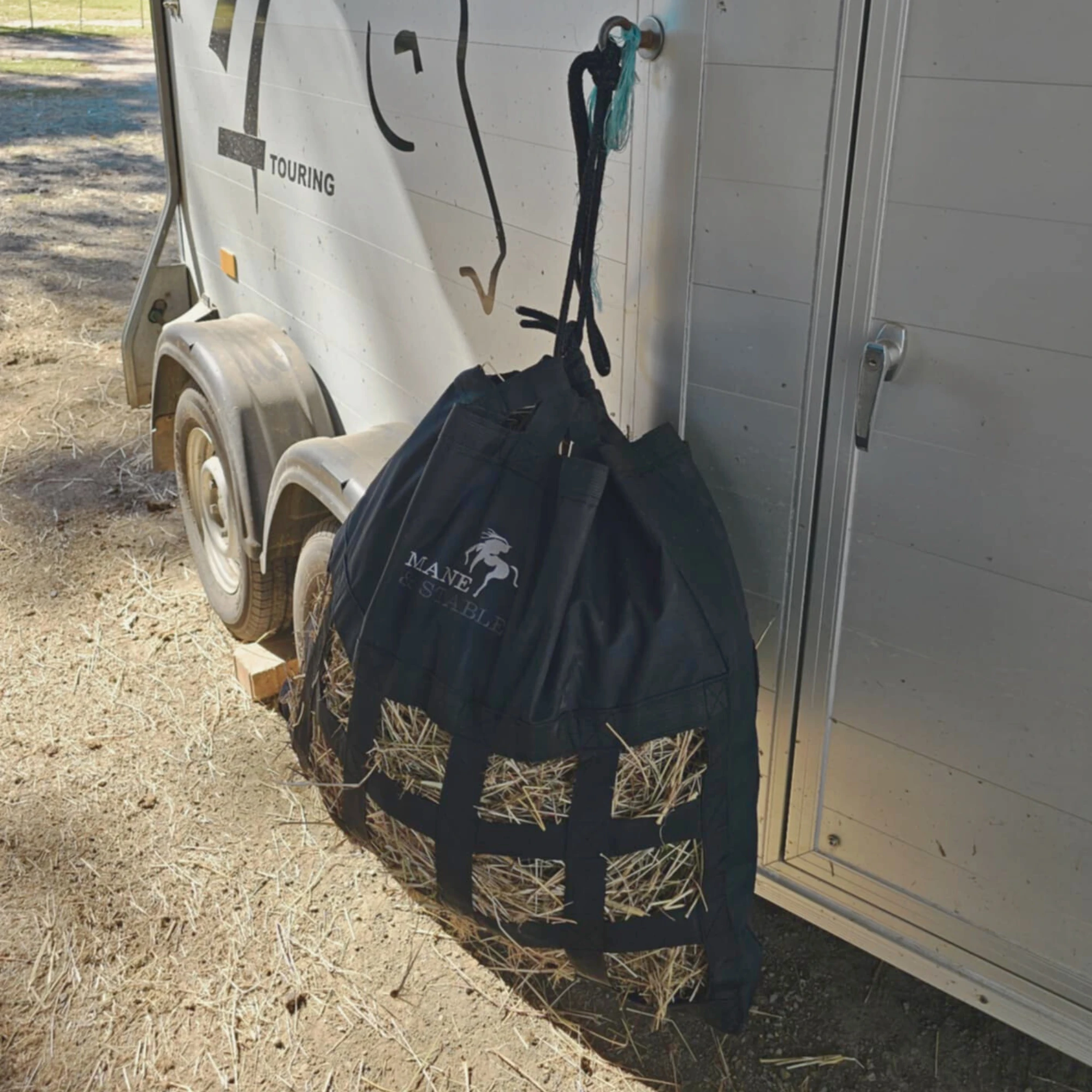 Not all barns, trailers, or paddocks have the perfect setup for hay nets. The adjustable heavy-duty cord lets you secure the bag on posts, stalls, trees, or trailer hooks at the right height — giving you flexible, reliable feeding wherever you are.
