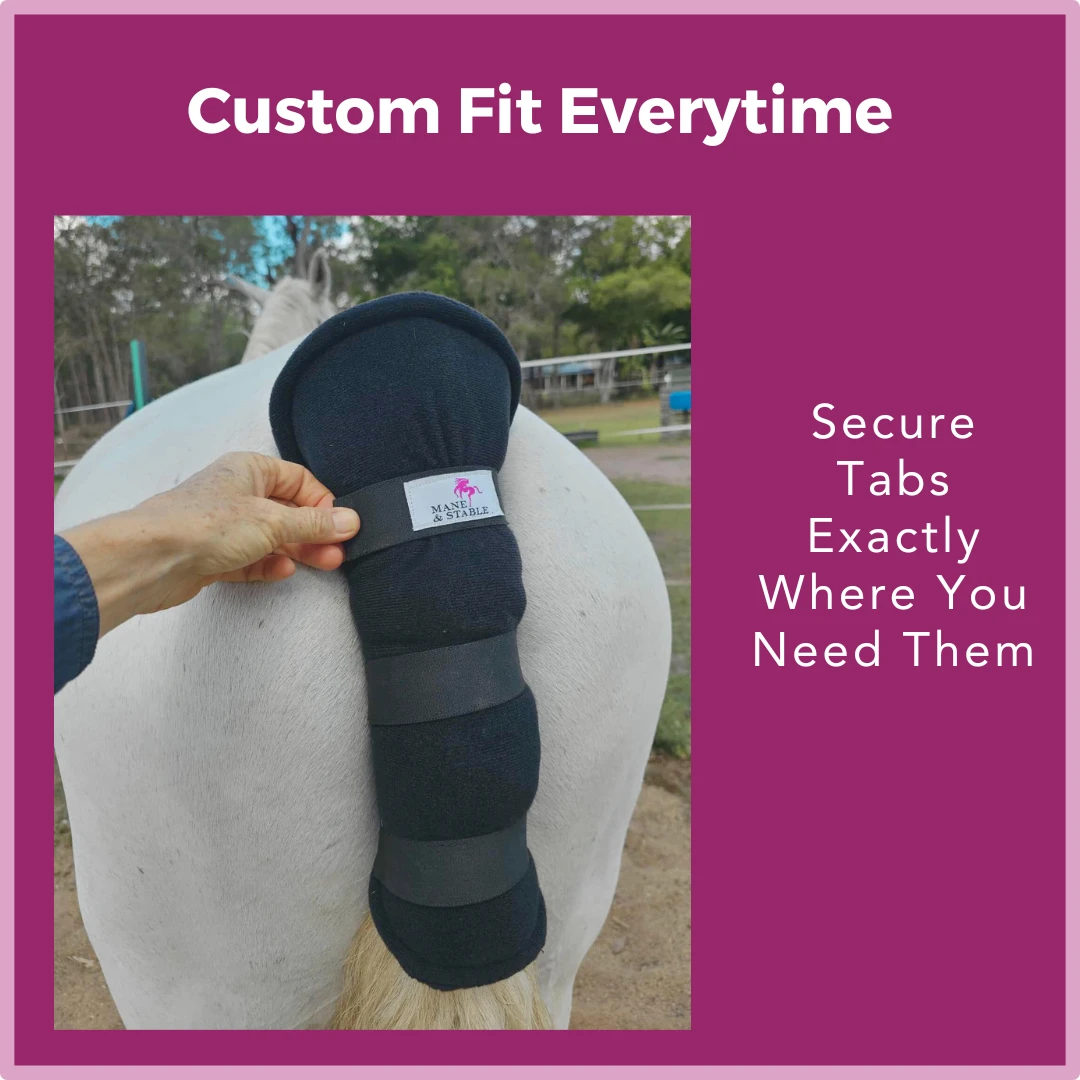 The Tail Wrap is best suited for horses over 15hh or chunky ponies (14–14.2hh) with thick tails. The adjustable Velcro straps allow for a secure, custom fit.