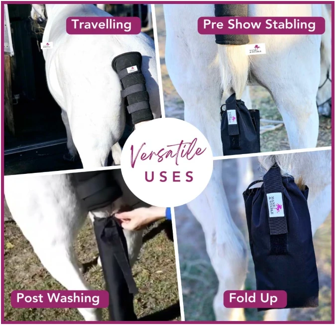 Absolutely. The waterproof fabric protects against rubbing, dust, and manure stains during transport, so your horse arrives with a show-ready tail.